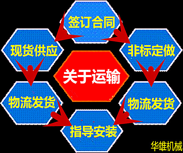 華雄機械對于常規(guī)產(chǎn)品現(xiàn)貨供應(yīng),當(dāng)天訂貨,當(dāng)天發(fā)貨,購買便捷。我公司按照合同規(guī)定的時間、地點,把貨物運輸?shù)侥康牡亍X浳锿羞\后,我公司按照物流變更隨時通知收貨人。對于非標(biāo)定制,我公司在預(yù)定工期內(nèi)完工之后及時通知客戶,如客戶有指定物流或快遞,我們會按照客戶要求發(fā)貨,如果客戶無特殊制定物流或快遞,我公司默認(rèn)德邦物流發(fā)貨。